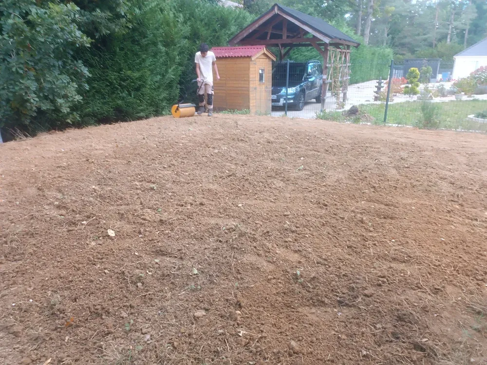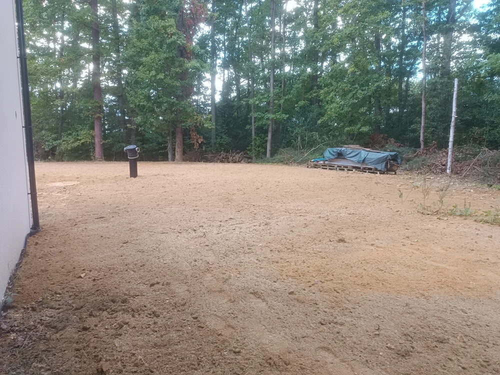 Samedi dernier, l'équipe de Vert et Beau, en collaboration avec son partenaire AMJP, a entrepris un projet ambitieux à Poigny-la-Forêt. Ce projet consistait à transformer un terrain inadapté en un magnifique jardin plat, en étalant la terre de déblai extraite lors de la construction de la maison et en semant du gazon.