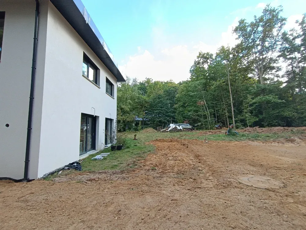 Il s'agissait ici de retrouver le niveau naturel du terrain car lors de la construction, l'entreprise de BTP avait grossièrement étalé la terre, ce qui avait créé une butte artificielle. Notre intervention a donc consisté à niveler le sol, étalé la terre en une grande surface plane et semer du gazon rustique, adapté à l'usage d'agrément.
